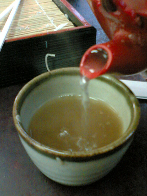 そして、食後のお楽しみ。そう。蕎麦湯です。だしを薄めて飲むと…たまりませんねぇ。たっぷり楽しみ大満足。
