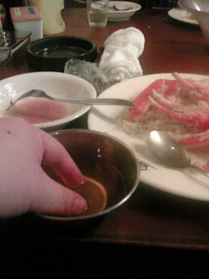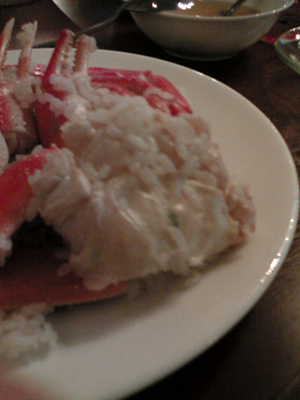 豪快!メヒコのカニピラフ (茨城編) 2009年5月4日 オフ 投稿者: Jack_Amahno ~カニピラフとご対面~ さあ、いよいよ、「メヒコピラフ」がやってまいりました。 ってでかっ!!「どーん」って感じです。 写真で見ると「カニ」を蒸したように見えますが、ピラフです。間違いなく(笑)。 拡大図です。 そう、カニを殻ごと一緒に炊き込んだのが「メヒコピラフ」なんです。 なんという大雑把な、いや豪快な…で、どうやって食べるんだい、これは?(笑)。 ~カニピラフのいただき方~ どうやってこの大雑把なピラフ(失礼な奴だ)をいただくのか? そう、ここであの「道具」たちの出番です。まずお米にまみれた、カニの殻から身を取り出します。大きなボールは殻を捨てるためのもの。 ここから、身を出して食べるか、お米を食べるか、平行で作業するかはお客様の自由でございます。 で、例のフィンガーボールは、カニの身をほぐしたときに、手を洗うのに使います。 そうやって粛々と食事がすすんでいきます。 ~ご馳走様のその後に~ ご馳走様・・・すると大きなボールにたくさんの殻、ほぼ丸々一ぱい入ってたんですね。 しばらくはカニを見ても食べたくなくなるほどの食べました。おなかいっぱい・・・ しかし、テーブルのメニューにあるものが・・・ん? 手もとにチラシが・・・ 「カニピラフ手持ち折、中の値段で大以上のボリューム」 何を、いまさら…確かに・・・お徳だが・・・ そんなん、腹いっぱいで買うわけない・・・ えっ?なんで写真があるの・・・って結局お持ち帰りしちゃいました。 「カニピラフ手持ち折」(大)」。む、無謀だ・・・おなかいっぱいなのに・・・ 開けてみました・・・うーむ、ぎっしり。 昼から時間も経っていたので食べ始めたら、悲しいほどにおなかに入り、 翌朝には食べきりました(笑)。 またしばらくしたら食べに行こうかな。 (完) 最後までお読みいただきありがとうございます。 関連記事 人生ラーメン(茨城県) 今回は、茨城の知るひとぞ知るラーメンの店…... ページ: 1 2 Vol.12「桜賑わうころ」 (2009.4.5:神奈川県秦野市) 宇都宮餃子「正嗣」